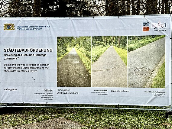 Die Tangente zwischen Heinrichbrücke und Jahnwehr wurde erneuert. Plakativ wird u.a. am Ende der Bauzeit per Bilder daran erinnert, wie der Zustand zuvor aussah. Ein Berechtigungsnachweis!