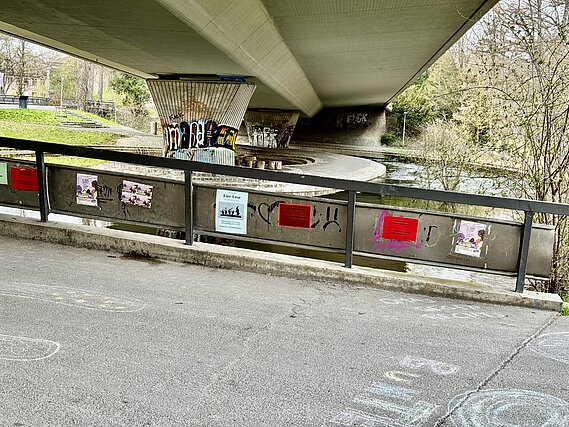 Die Hainbrücke mit seinen Elementen ist ein preisgekröntes Bauwerk. Z.B. Brückenpfeiler oder -geländer sind Botschaften einer gelungenen Architektur, nicht Träger für Botschaften eigener Interessen. Gedankenlos und naiv!