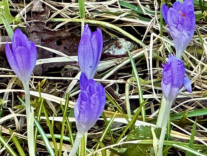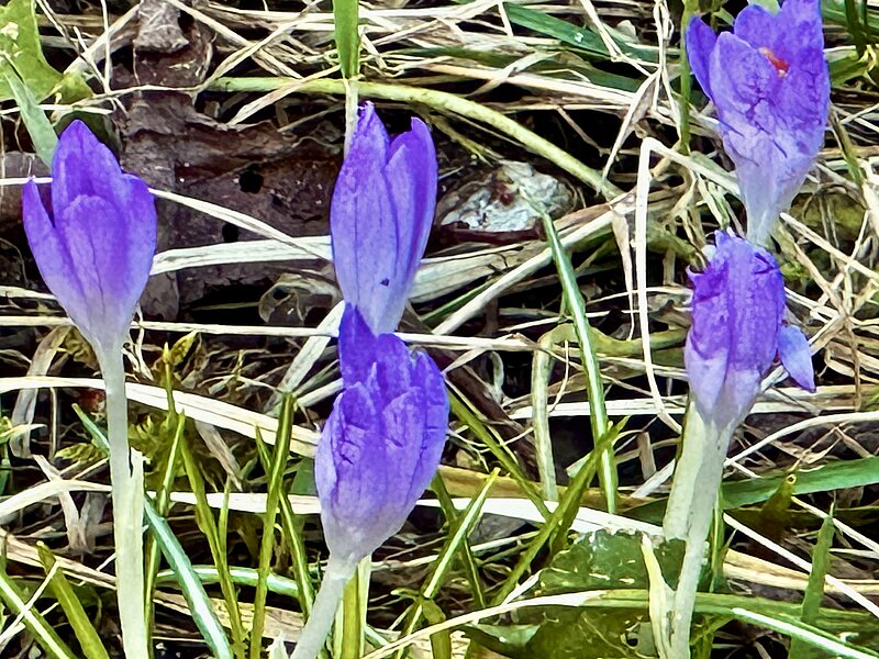 Der abgebildete Krokus ist ein Früh-Ling, ein voreiliger, versteckter Solitär. In wenigen Wochen sind flächig wilde Krokusse in der Nachbarschaft zum Botanischen Garten und der Blumenrondelle zu bewundern. Blausterne, Lungenkraut und Buschwindröschen etc. werden sich dann auch zeigen -. und natürlich Bambergs "Hain-Gögerla", der Lerchensporn. - Die Wildbienen, Hummelköniginnen und Schmetterlinge finden mit diesen Frühblühern ihre stärkende, "schmackhafte Nahrung".