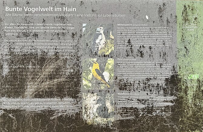 Im Hainpark sind themenbezogene sogenannte "Hain-Pulte"platziert. Die Info-Stelen bedürfen aktuell einer Pflege.